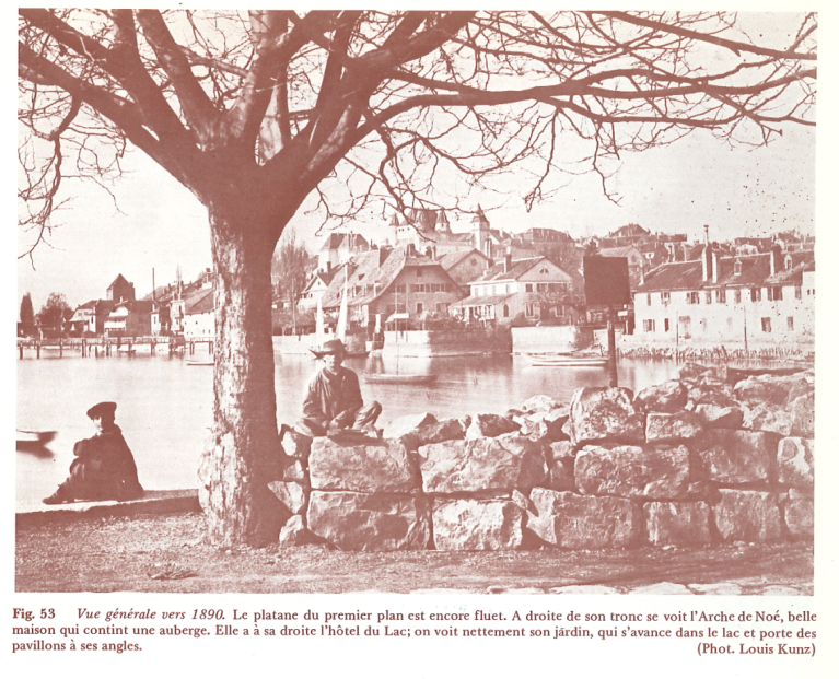 Alors ombragée par deux marronniers, la terrasse surplombant le lac offrait déjà un panorama exceptionnel. Les hôtes séjournaient les pieds dans l’eau et les yeux dans les Alpes.